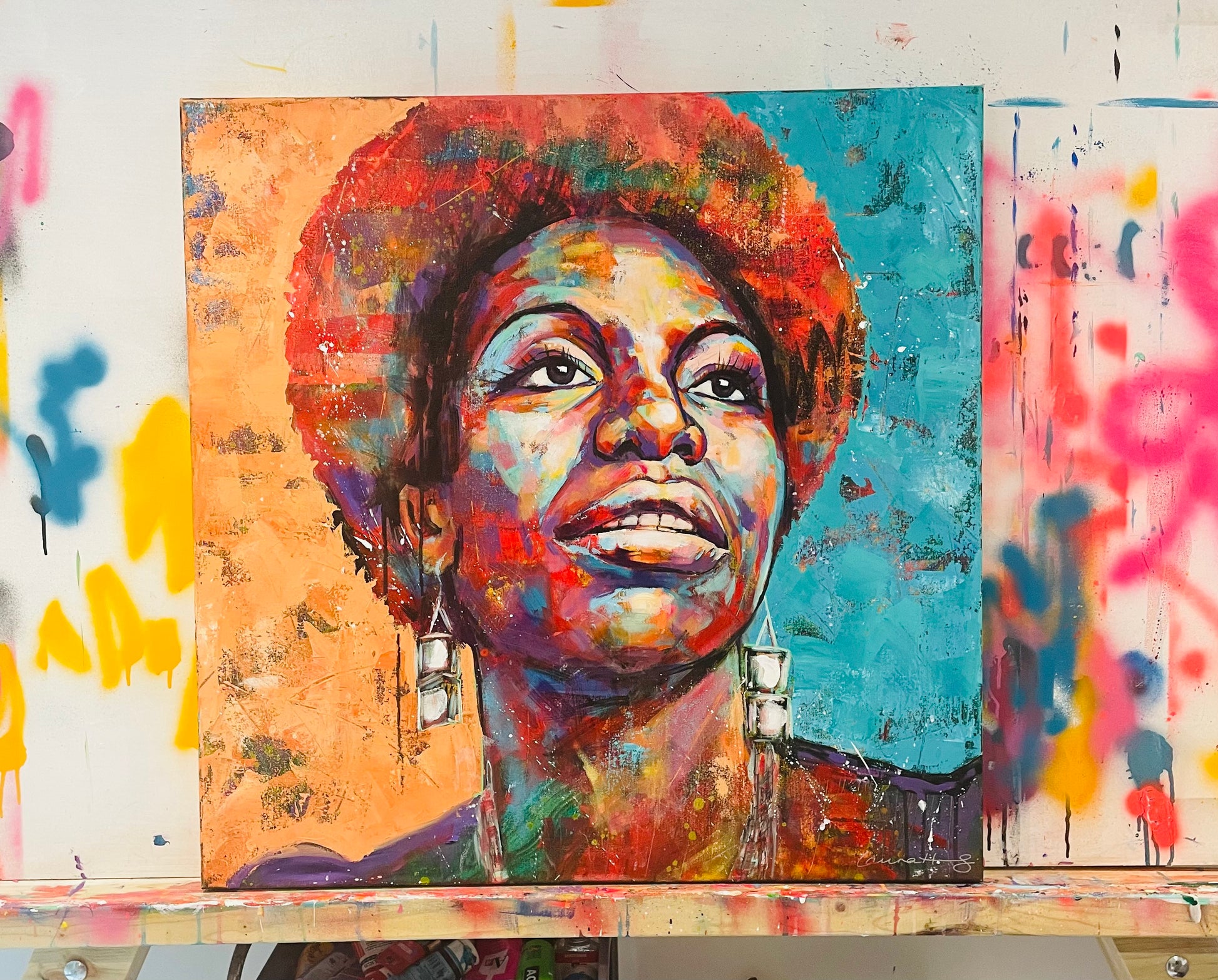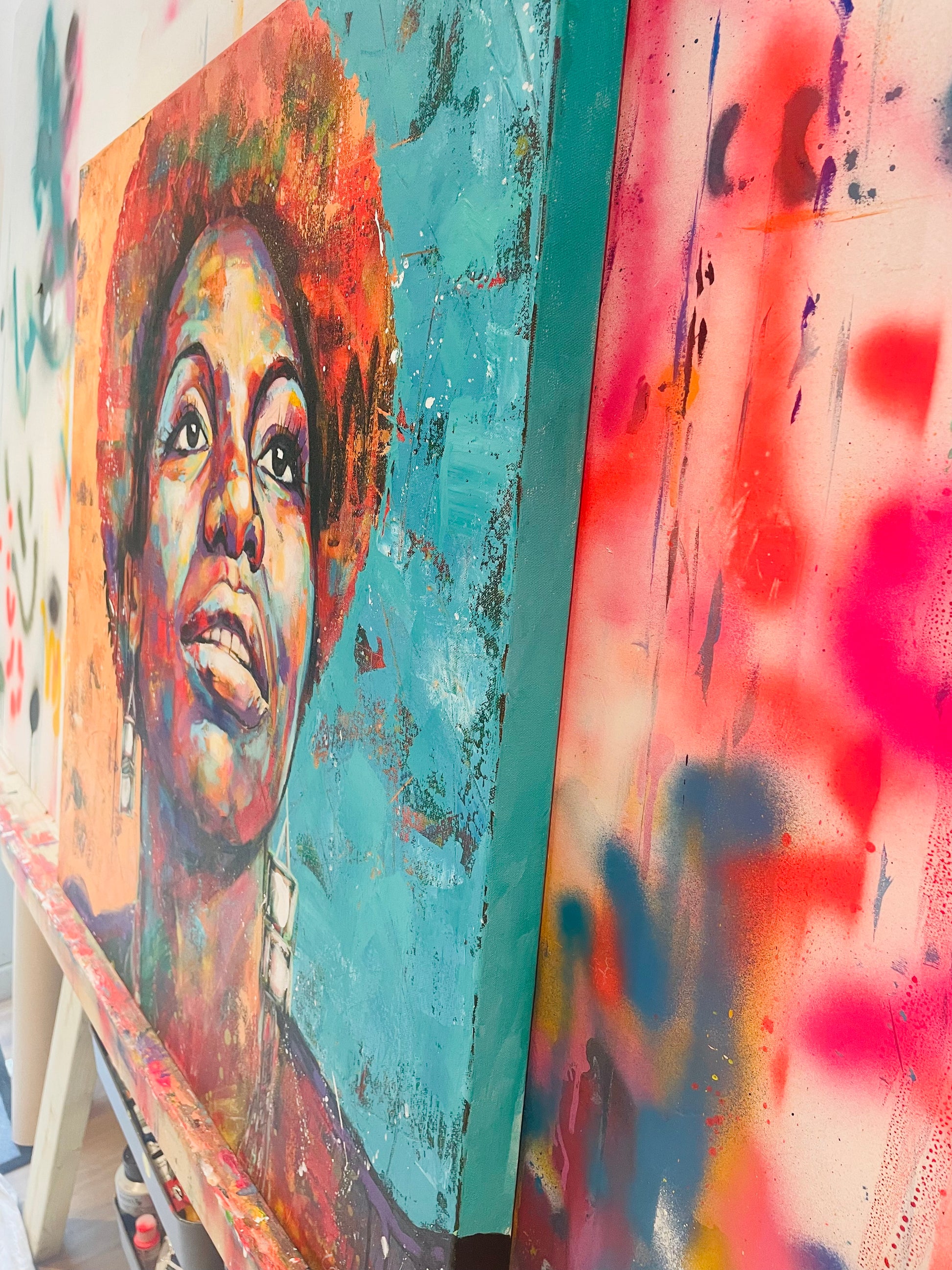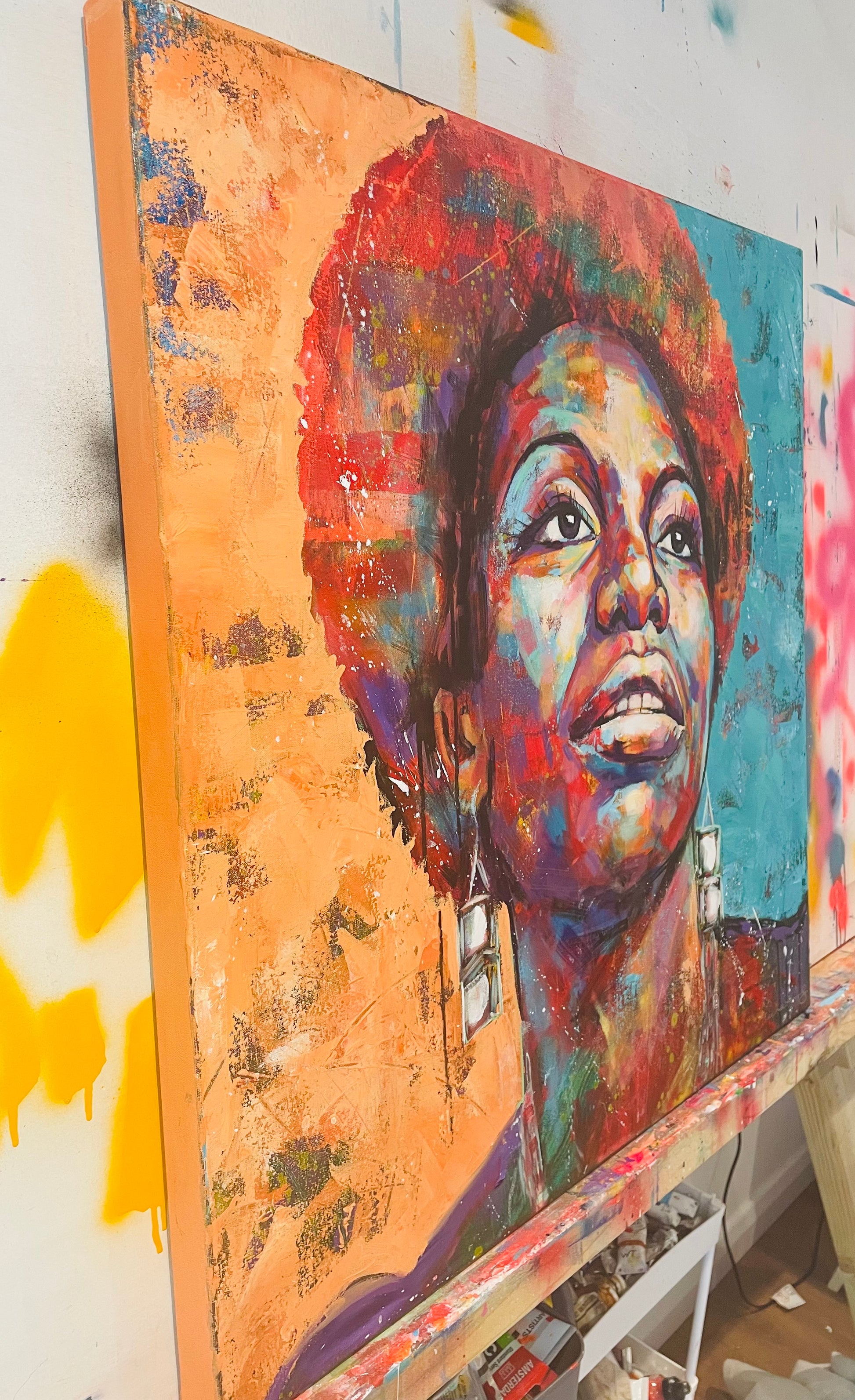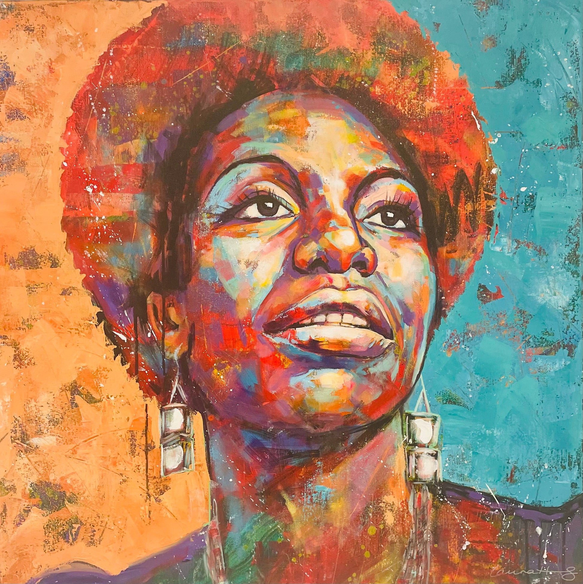 The legend that is Nina Simone. Painted along to Feeling Good and Spell on You, the music, her voice, and boldness, influencing every brushstroke.